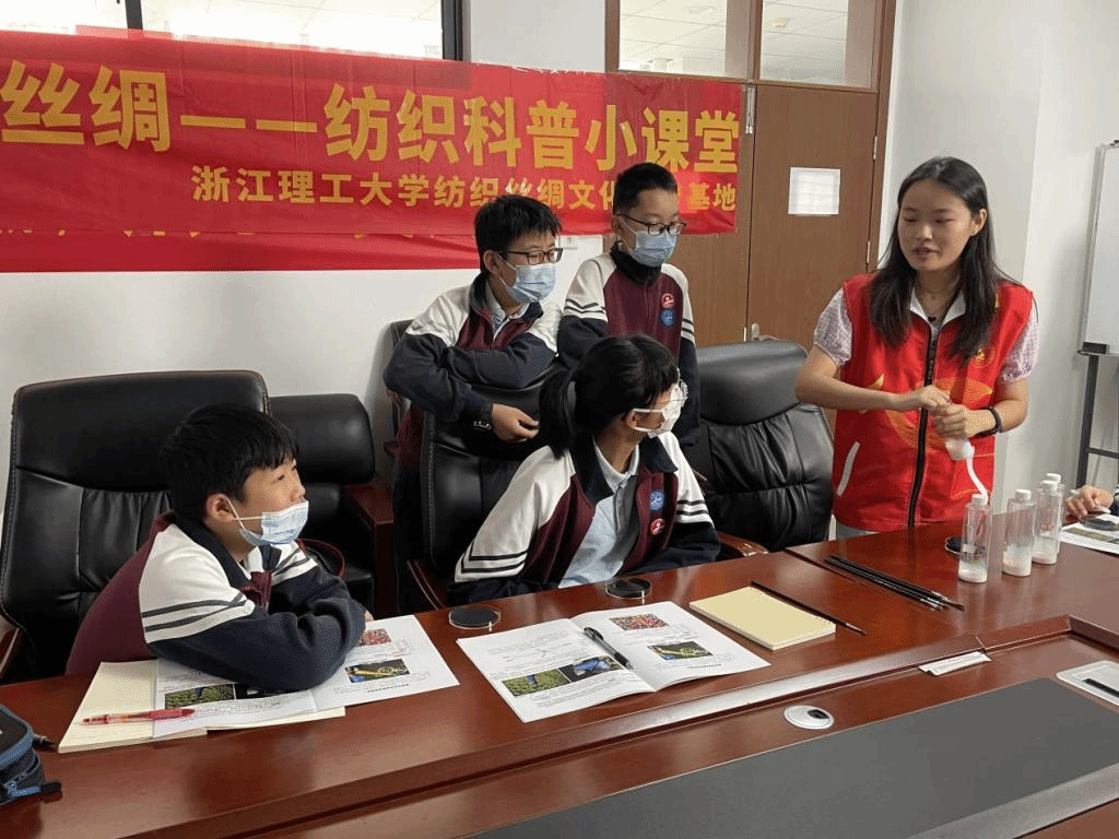 为进一步推进大中小学思政课一体化,发挥公司“三丝”励志服务团青年老员工志愿服务精神,做好千年纺织丝绸文化的科普宣传,引导中员工将劳动实践教育与课堂知识学习融会贯通。2022年5月21日,MK体育在公司24号楼231实验室与文海中学来访的中员工进行了一次别开生面、寓教于乐的纺织科普“劳育课”。