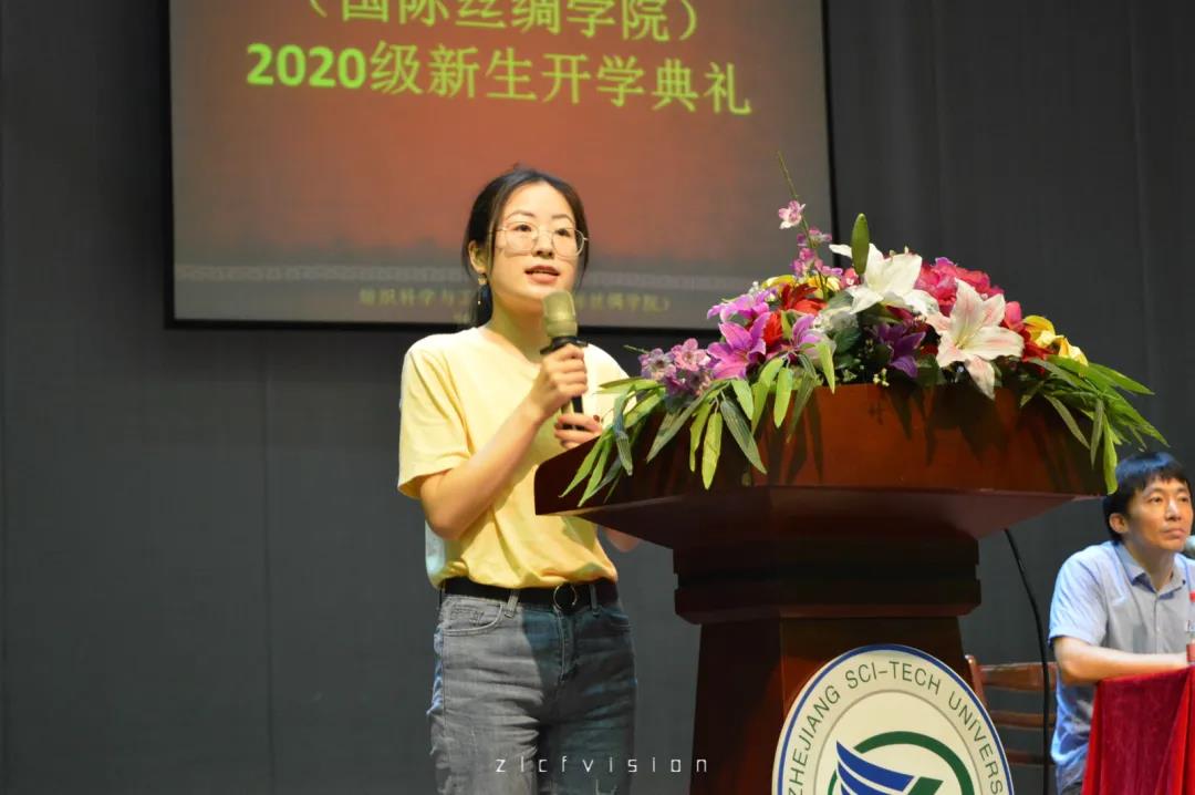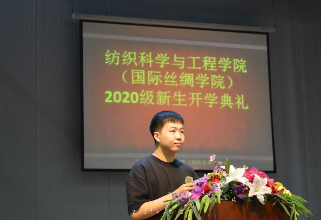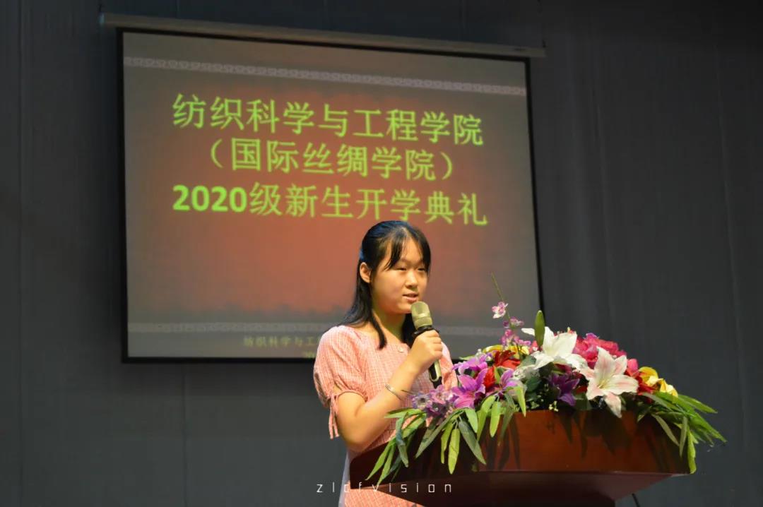 然后是老生代表18级硕士研究生余月琳发言,她向学弟学妹们介绍了自己的科研心得,鼓励新生勤于思考,敢于创新,在大学里成长为更好的自己。20级纺织轻化工程研究生邢宇声作为研究生新生代表发言,他结合自身的考研心路历程,表达了在未来读研阶段奋发进取,勇攀科研高峰的信心。20级本科新生钱玉仙作为新生代表发言。她感谢了公司领导对于新生的关心,谈到了自身从高中生到老员工身份的转变,会更好地珍惜公司的教学资源和团队力量,为争做新一代优秀的纺织人而努力。