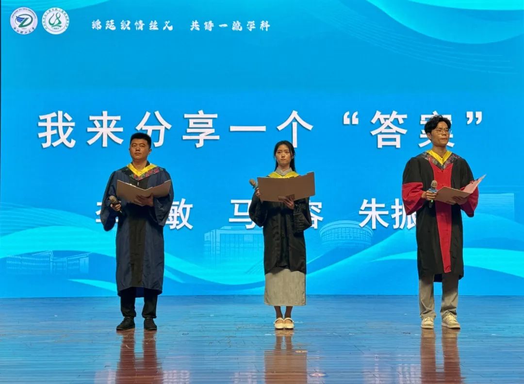 公司本硕博毕业生代表李慧敏、马江容、朱振琦做主题发言《我来分享一个“答案”》。初来乍到时,你有怎样的人生之惑?来到浙理纺织,你又收获了怎样的答案?李慧敏的“自信、大方、真诚、热爱”,马江容的“下笨功夫、下苦功夫”,朱振琦的“坚持”,都是自己在浙理觅得的答案,他们情真意切的发言引发现场师生共鸣和思考。