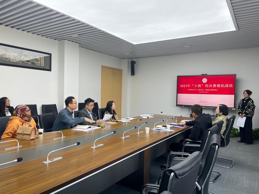 会议开始,侯霞介绍了本届“挑战杯”主赛道备赛工作的进度安排,简要介绍了校决赛入围10个项目的总体情况。随后,10支项目团队选手现场进行模拟答辩。选手通过6分钟的项目陈述,详细介绍了项目的背景、创新点和应用价值;评委们逐一进行了4分钟的自由提问并点评,并就文本修改、内涵提升、解说技巧、团队合作等关键要素进行了针对性辅导。
