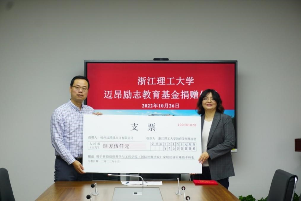 仪式上,方平还进一步解读了由迈昂励志教育基金资助的MK体育“迈昂”励志人物奖学金评比办法,之后,方平与杭州迈昂进出口有限公司黄玮签订捐赠协议书,颁发捐赠支票。