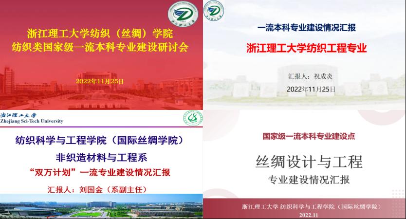 纺织工程专业负责人祝成炎教授从纺织工程专业定位、历史沿革、特色优势、建设举措和成效、人才培养质量、下一步工作计划等方面,介绍了纺织工程专业建设工作。同时分享了典型建设经验,例如,课程思政优质资源建设及校际推广共享;纺织工程专业顺利通过工程教育认证;课程和教材建设、教学改革和研究取得各级各类多项成果;员工学科竞赛、毕业设计、专利获批等方面获得丰硕人才培养佳绩。