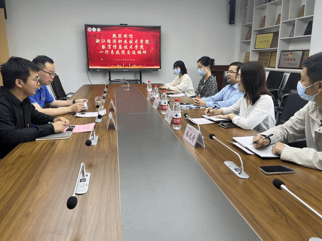 5月19日下午,浙江经济职业技术公司数字信息技术公司党总支书记楼建列、副书记陈可一行来公司开展调研。公司党委副书记方平、研究生辅导员胡万里热情接待,并与来宾进行座谈交流。