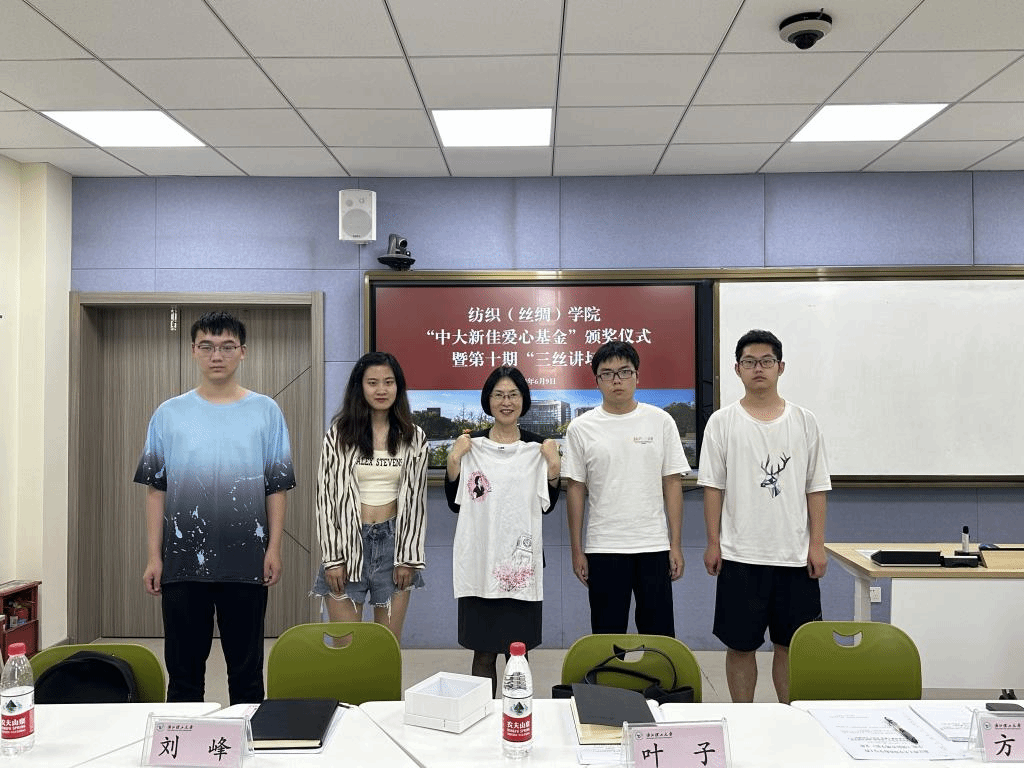 活动最后,获奖员工代表向叶子赠送了精心准备的纪念品——DIY T恤衫,图案由员工自行设计绘制而成,每位受助同学都在背面郑重签名,以表达对叶子员工、中大新佳的由衷感谢。