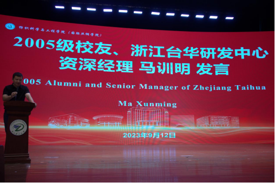 随后,05级员工、台华新材研发中心资深经理马训明结合自己的工作经历,就个人发展问题及未来择业问题向新生分享了自己的经验之谈。