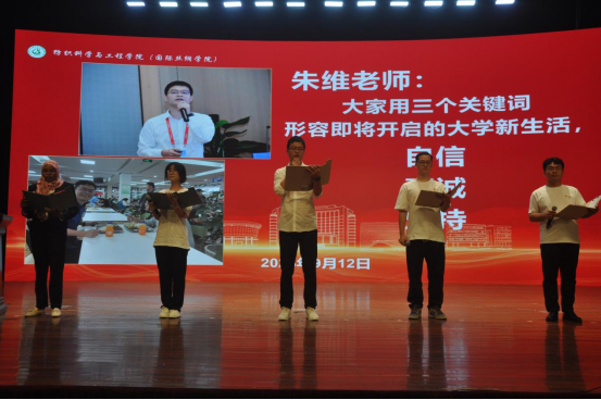 教师代表、辅导员代表、老生代表和外籍教师代表做主题发言《我,有一个问题》,“用哪三个关键词形容即将开启的大学新生活?”、“如何在浙理纺织成为更好的自己?”、“如何在大公司园中平衡并把握工作和学习,以实现自我价值的最大化?”、“作为一名辅导员如何更好地陪伴大家成长成才?”、“ How To Adapt To A new Academic Environment As An International Student?”,每一问都是新生入学踏实、安心走好大学每一步的灵魂之问、宝藏之问。