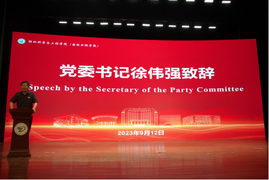 紧接着,党委书记徐伟强为“向党组织报告”新生主题征文活动获奖的同学颁奖。优秀作品获奖代表、新生代表沈梦卿结合自己的成长经历分享自己的感悟,她呼吁新生要听从时代召唤,把小我融入大我,让青春绽放在祖国最需要的地方。