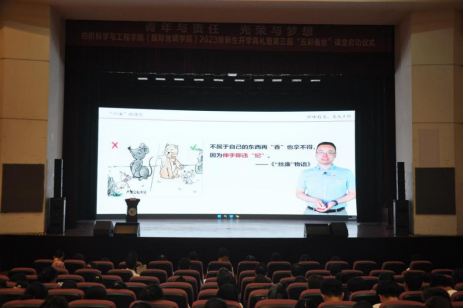 欲穷千里目,更上一层楼。精彩的开学典礼过后,MK体育经理于斌教授为23级新生讲“开学第一课”,以启迪专业发展,成就职业梦想。于经理旁征博引、引经据典向大家介绍了纺织行业的发展、纺织学科的定位、纺织专业的特点等,鼓励新生要有学科自信,要勇敢迈出学术钻研和科研竞赛第一步。同时,于经理向新生寄语,希望大家能够做到,学习为先、读书为本,懂得感恩、学会包容,脚踏实地、仰望星空,诚信为人、守牢底线,早立目标、持之以恒,保护自己、照顾家人。于经理的教导振奋人心,言语间充满了对新生们的期望。至此2023级新生开学典礼暨第三届“五彩蚕丝”课堂启动仪式结束。