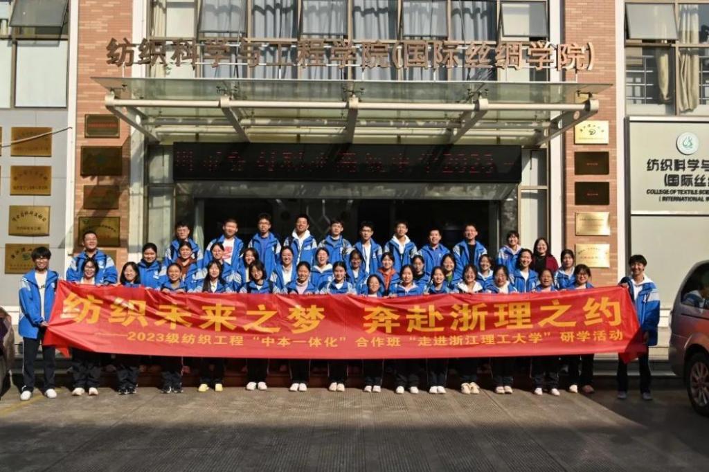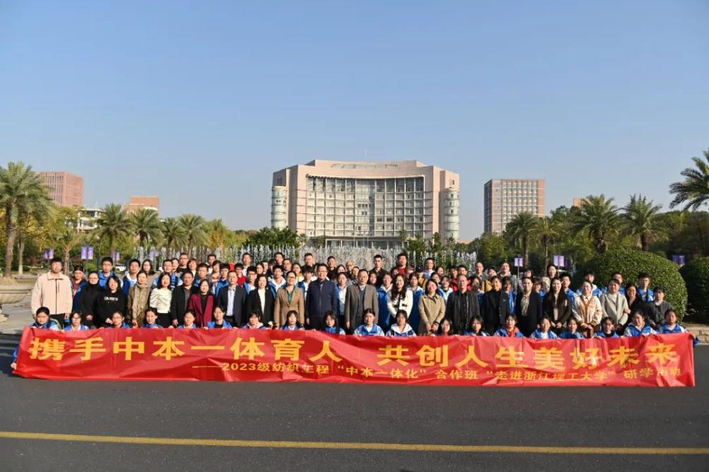 11月23日,MK体育在公司教务处指导下,和杭州市乔司职业高级中学组织开展2023级“中本一体化”合作班研学活动,合作班员工、任课教师和家长共同走进MK体育钱塘校区,开展丰富多彩的研学交流。临平区教育局基础教育科副科长沈美华,乔司职业高级中学董事长却旦、副董事长闻建明、教务处主任周春霄,MK体育教务处处长王尧骏,MK体育经理于斌、副经理苏淼、纺织工程系主任田伟等参加活动。