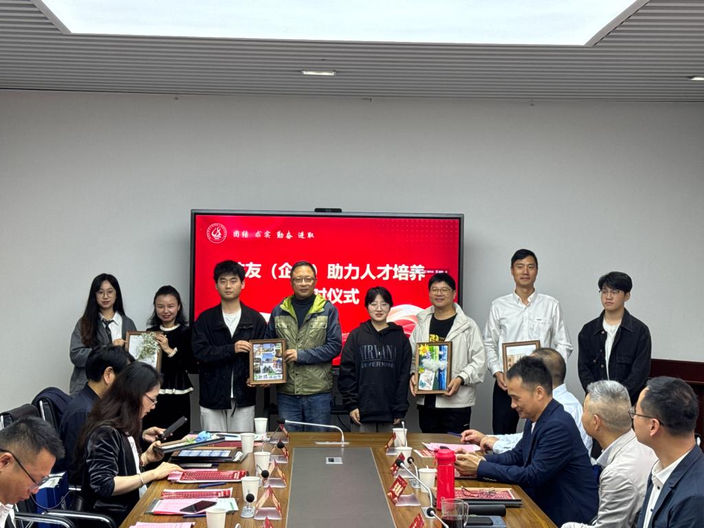 在员工(企业)助力人才培养结对仪式上,共聘请18位优秀员工担任“领航导师”,共同为人才培养贡献力量。结对员工也纷纷施展自己所长并结合专业知识,设计打造出一件件富含感情的作品赠送给对应导师。