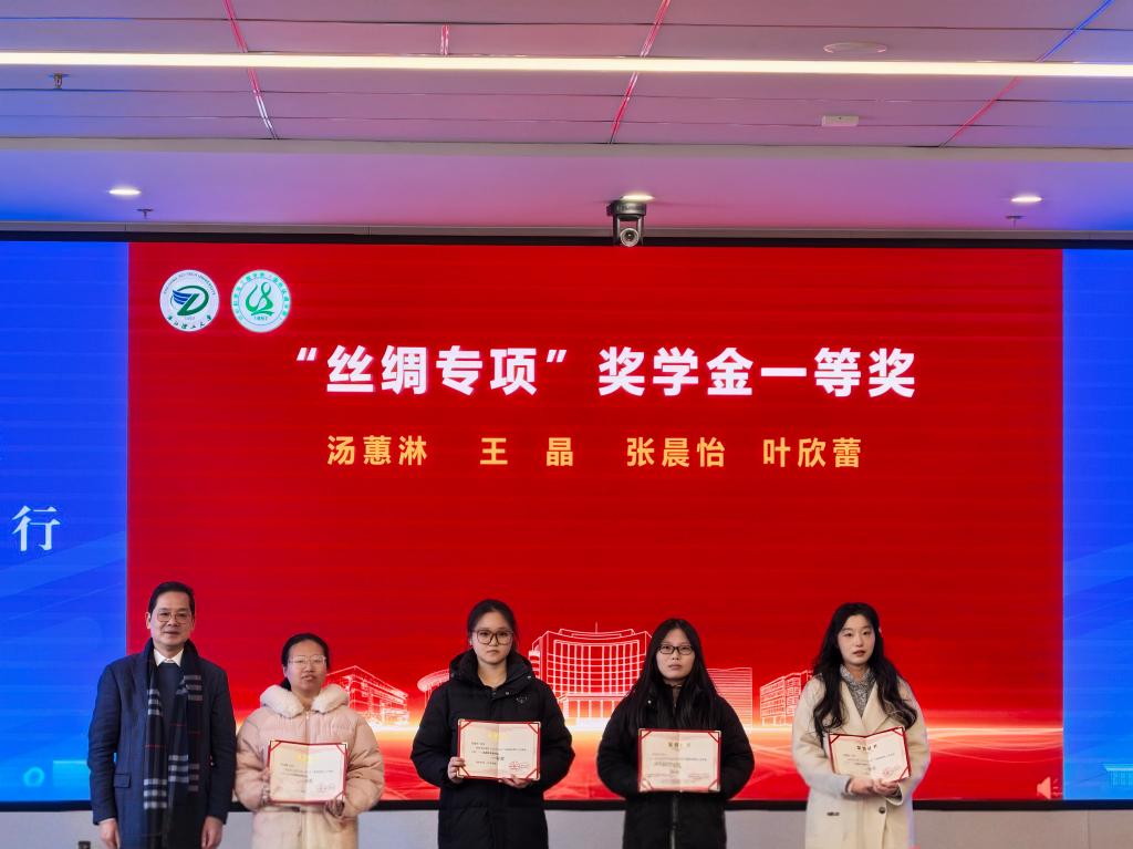 2021级纺织科学与工程博士研究生陆爽怿和2022级丝绸设计与工程本科生张晨怡分别代表奖学金获得者做发言。他们表示,荣获本次奖学金,不仅是对个人在学习上努力和成果的肯定,更是对全体获奖员工的一种激励和鼓舞。他们将珍惜这份荣誉,继续深耕丝绸领域,不断探索和创新,为丝绸文化的传承与发展贡献自己的力量。