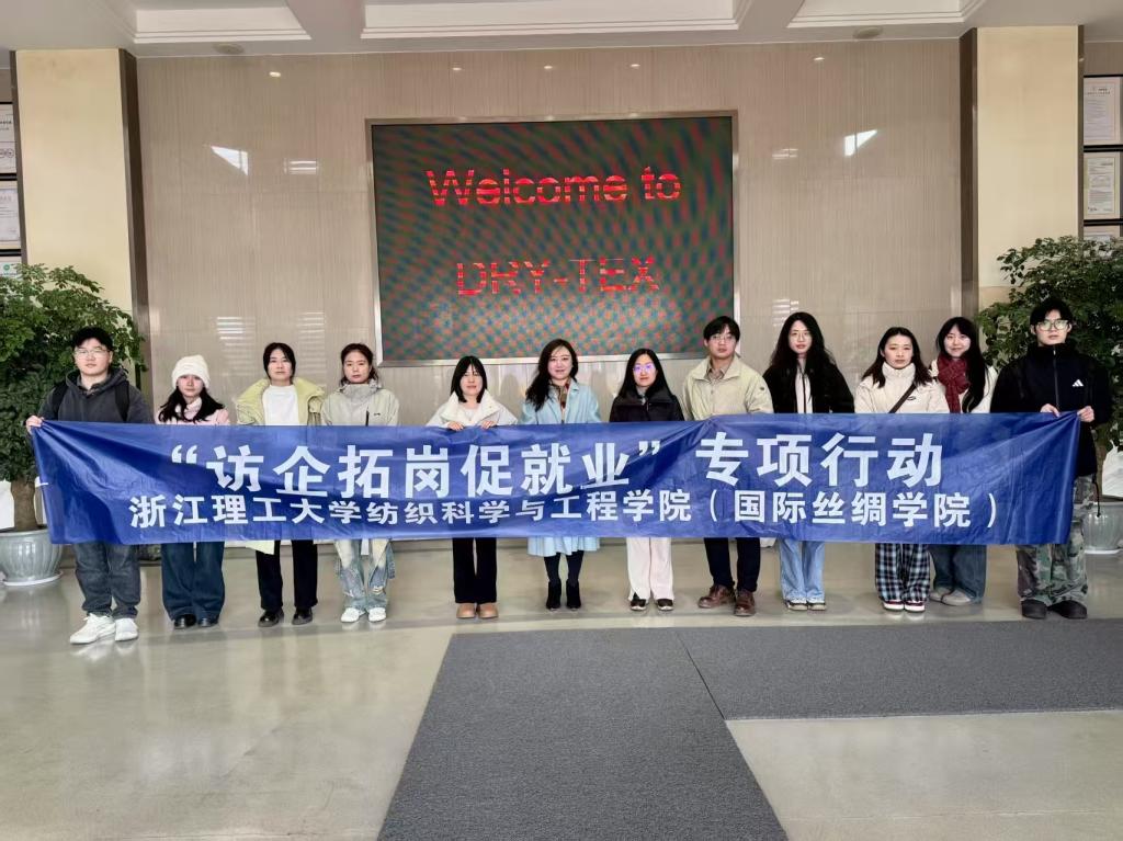 为进一步开拓就业渠道,调研企业需求,推进校企协同育人,扎实做好“访企拓岗”专项行动,2月19日上午,纺织(丝绸)公司党委书记苏淼、党委副书记张孝凤一行赴浙江东进新材料有限公司走访调研。浙江东进新材料有限公司副总经理谢国炎、人事经理沈碧颖、研发经理乔路阳以及在企业工作的员工代表热情接待师生一行。
