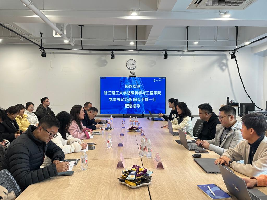 凌迪科技(Style3D)由公司1989级染整工程专业员工刘郴创立,是一家以“AI + 3D” 技术为核心驱动力的科技企业,是国内领先的纺织服装产业数字化解决方案服务商,致力于通过3D建模、虚拟仿真、人工智能等技术推动行业全链路数字化转型。理论学习中心组成员首先参观企业展厅,详细了解凌迪科技在数字面料研发、虚拟服装设计、智能制造等领域的核心技术成果,并现场观摩数字化设计平台的操作演示。