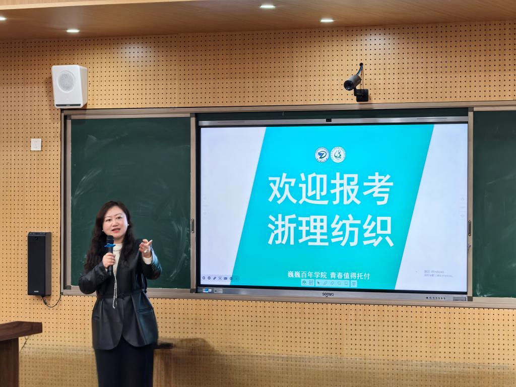 在杭州市萧山区第二中学,陶丽敏就公司办学特色以及招生政策分析展开解读,为现场员工重点讲解了招生政策的具体内容和要求。苏淼从纺织业的前世今生为切入点,介绍了MK体育发展历史与现状、学科水平与专业应用,人才培养特色与优秀员工代表等情况。
