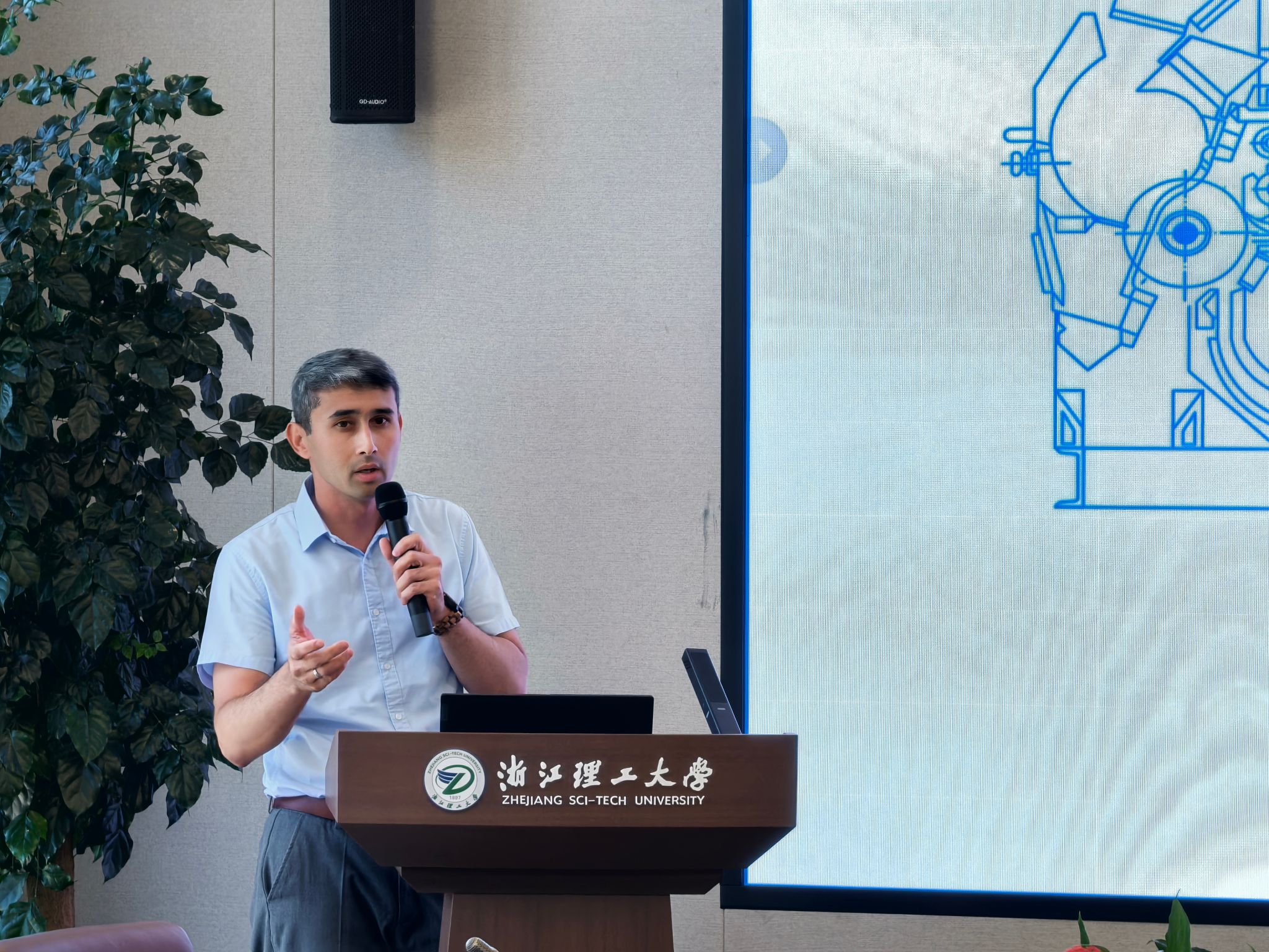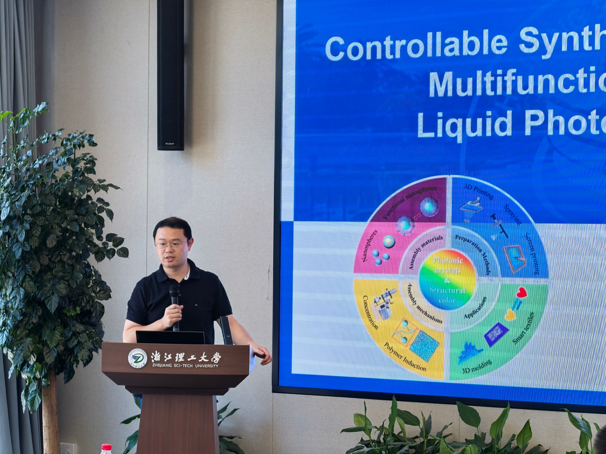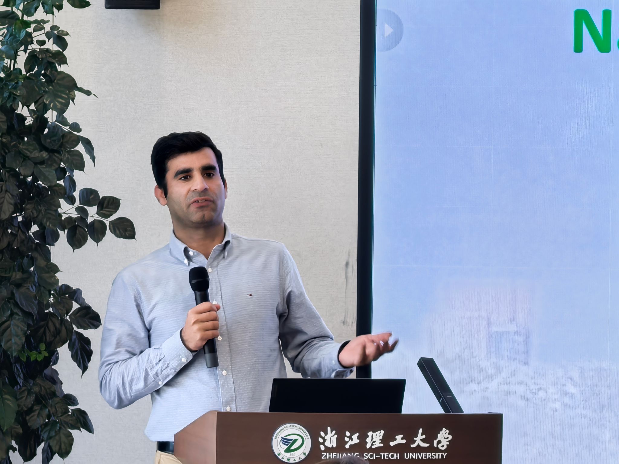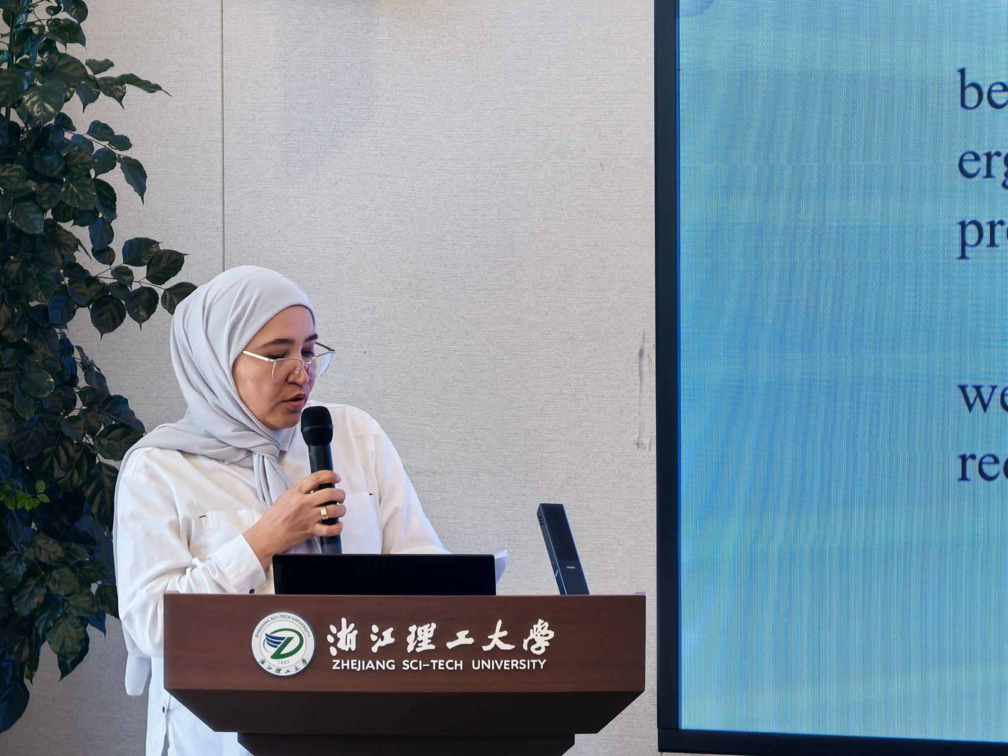 会议报告环节,来自中国、乌兹别克斯坦、巴基斯坦及俄罗斯等国的参会学者围绕“多功能电子纺织品”、“天然彩色棉的性能及湿加工”、“网络聚阴离子粘合剂”、“绿色包装材料”、“结构色材料设计”、“轧棉机技术改进”及“护理纺织品设计”等主题作了精彩报告。期间,参会学者对公司研究生学术墙报进行了参观、点评。