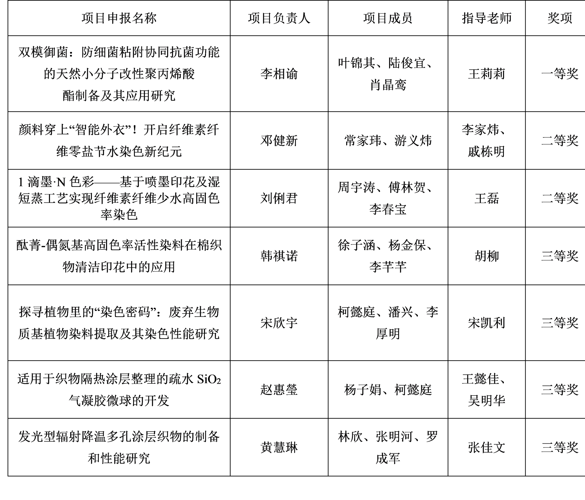 第六届全国老员工绿色染整科技创新竞赛项目获奖名单