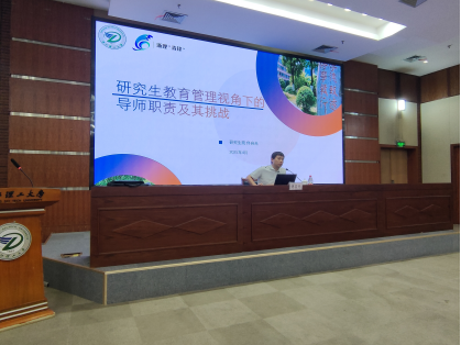 集团研究生院学位办公室主任佟自光进行了研究生教育管理视角下的导师责任及挑战主题报告。他呼吁导师要与研究生保持密切沟通,与研究生建立信任关系,强调“研究生导师不仅仅是学术的指导者,更应该是员工心灵的守护者”。