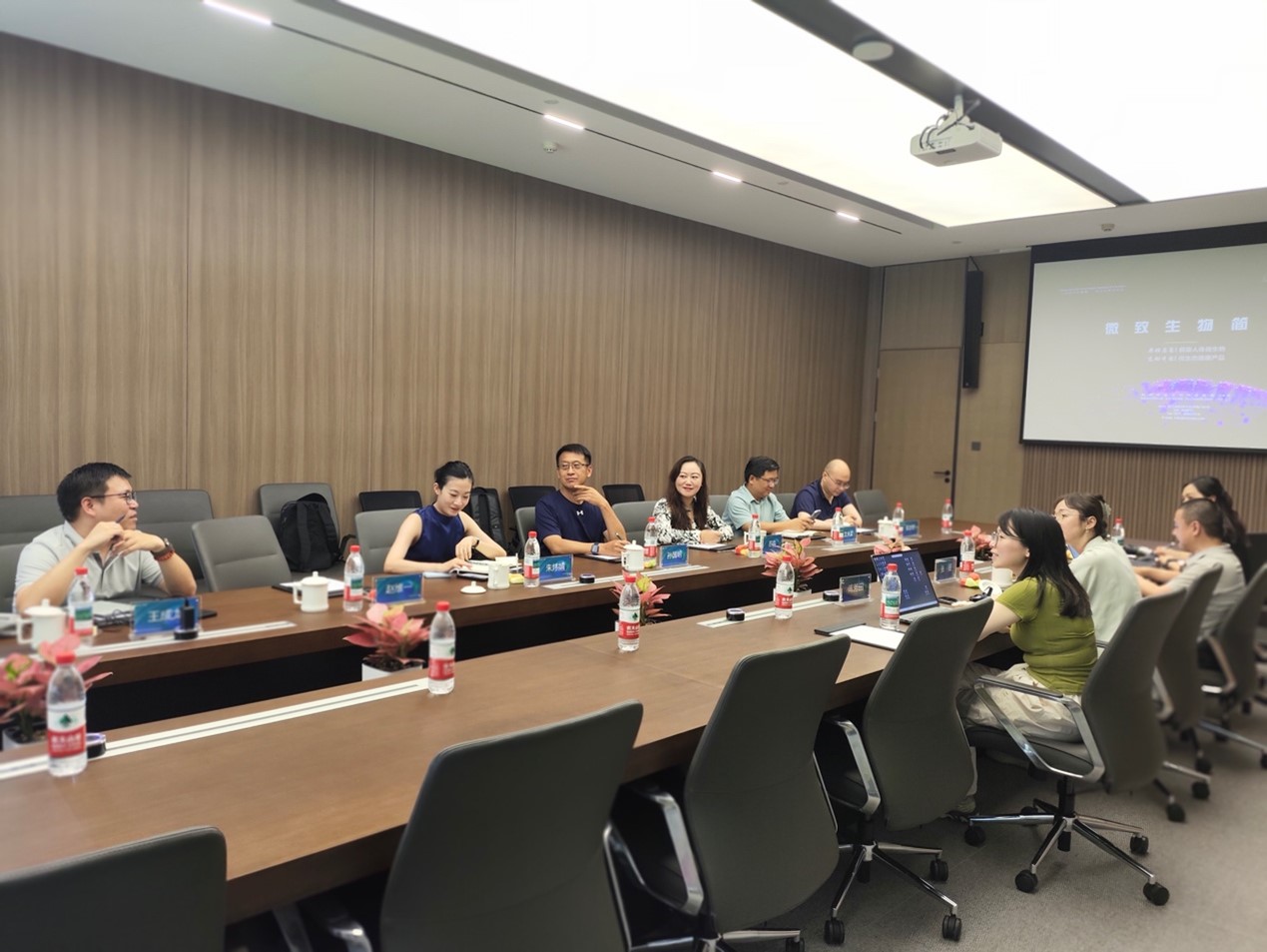 随后的座谈会上,校企双方围绕各自优势研究领域及未来潜在的合作契合点展开了热烈而务实的交流。公司方详细介绍了在功能性纤维材料、智能纺织品、生物医用纺织材料、生态染整技术及传统丝绸文化传承创新等方面的特色研究方向和成果。微致生物则重点阐述了其在人体微生态研究、活性成分生物制造及靶向递送技术上的领先优势。基于对科技创新驱动发展的共同理念,双方就“微生态活性成分与纺织材料的创新结合” 这一前沿交叉领域表现出强烈的合作兴趣,并在多个具体研究方向达成了初步合作共识,为未来携手探索微生态技术在健康纺织、医用纺织、美妆个护纺织等领域的应用奠定了坚实基础。