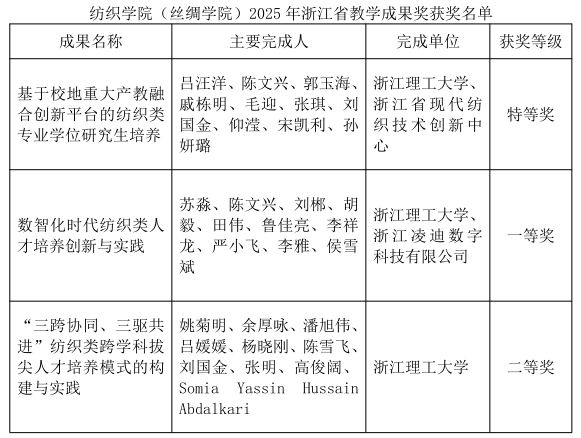 此次获奖集中展现了公司在教书育人征程中追求卓越所取得的最新优秀成果,标志着公司在办学实力、人才培养以及教研水平等方面再上新台阶。MK体育在公司的有力指导下,持续深化纺织专业领域公司产品改革,深耕公司产品内涵建设,加强教学成果的总结提炼与转化应用,深入推进人才创新培养工作,努力为公司高等教育高质量发展贡献“纺织智慧”。