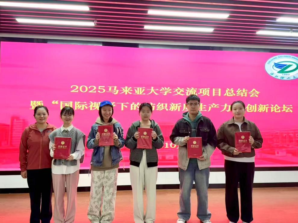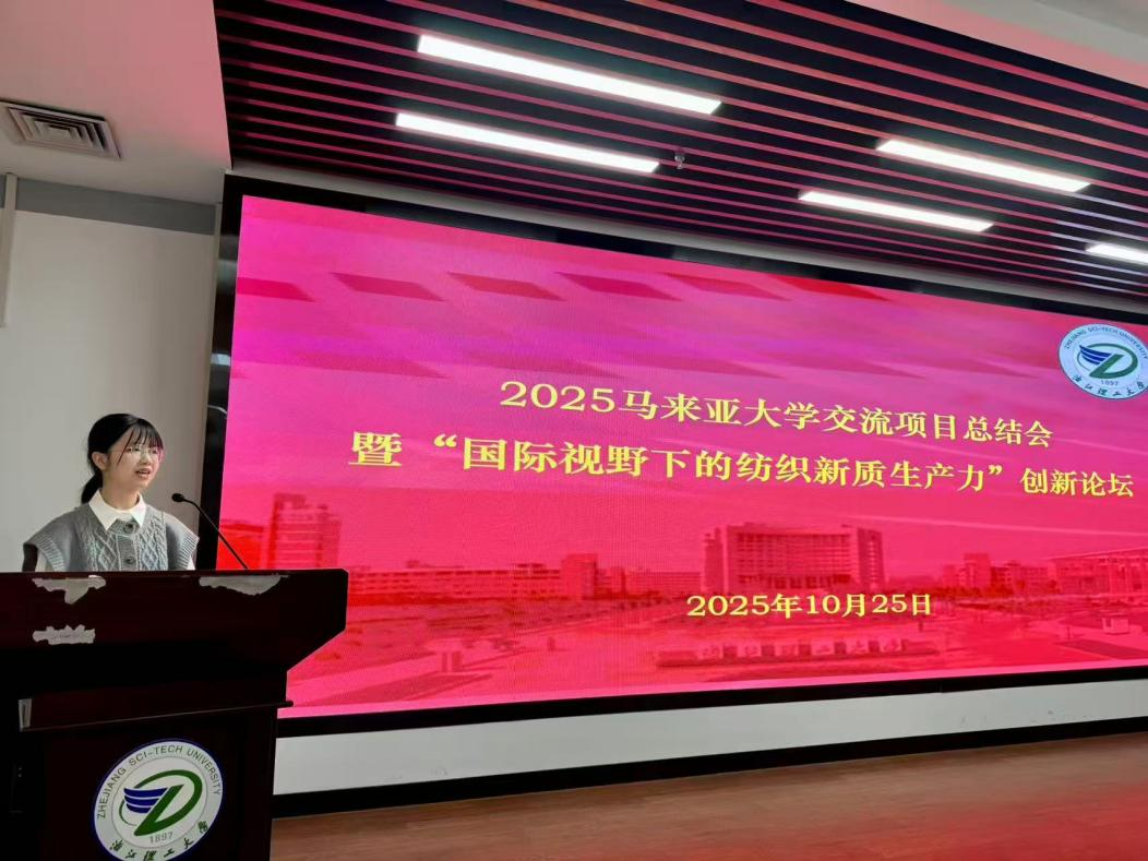 今年暑假,公司共组织60名员工前往马来西亚参加马来亚大学课程项目。值此项目结束之际,公司在致远厅召开了2025马来亚大学交流项目总结会暨“国际视野下的纺织新质生产力”创新论坛,公司副经理刘国金,学术副经理宋凯利,学工办主任侯霞,外事秘书倪端,专任教师孙菲、侯雪斌、翟世民、朱维以及参加交流项目的同学们共同出席了本次会议。
