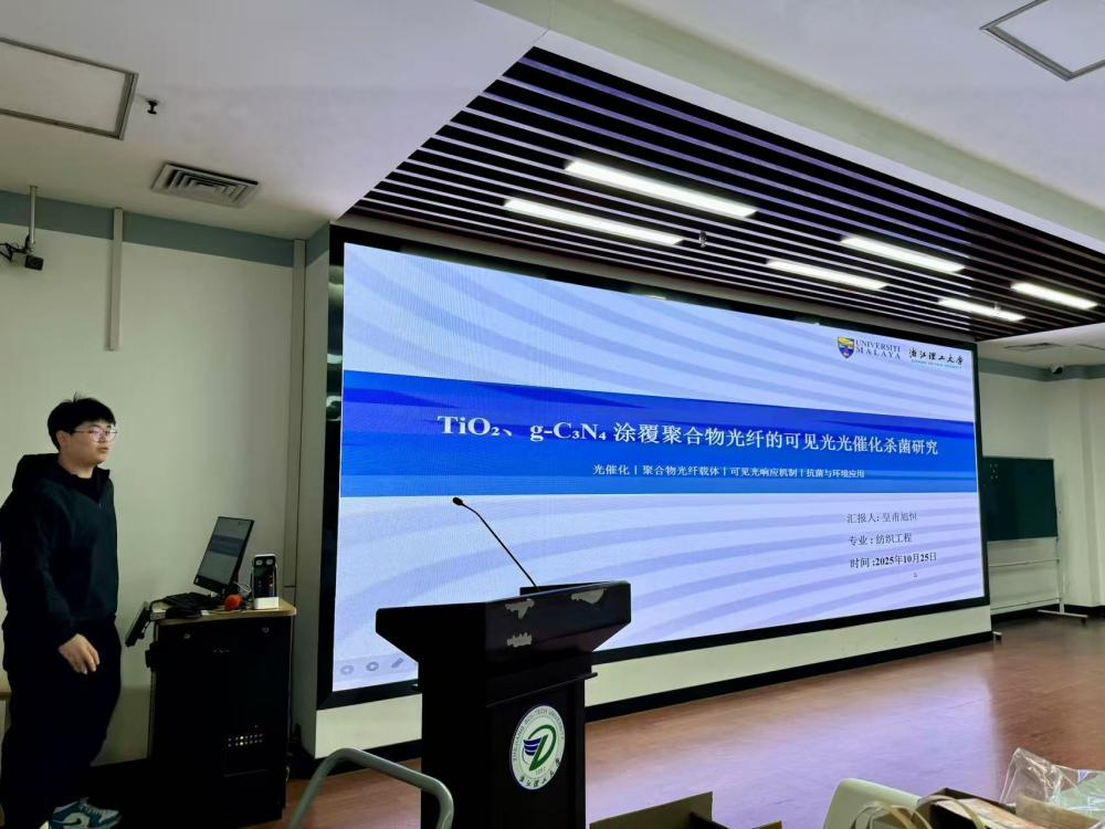 分享环节后,“国际视野下的纺织新质生产力”创新论坛正式拉开帷幕,多名同学上台汇报,分别就各自研究的课题及未来的科研方向做了详细汇报,与会的老师们也给予了中肯的点评与学术建议。