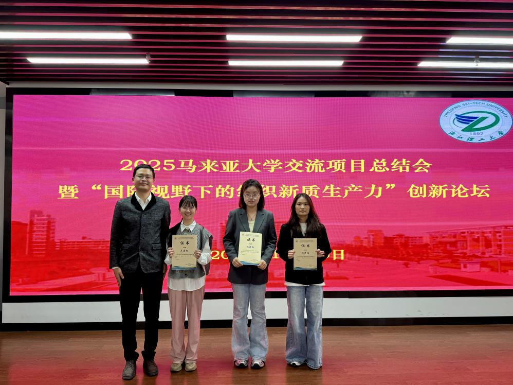 表彰环节过后,进入2025马来亚大学交流项目总结会环节。三个月项目的硕士生李智宇、一个月项目本科生梁晶晶及硕士生余夏杰分别就马来亚大学的语言环境、风土人情及成长蜕变等方面做了分享。