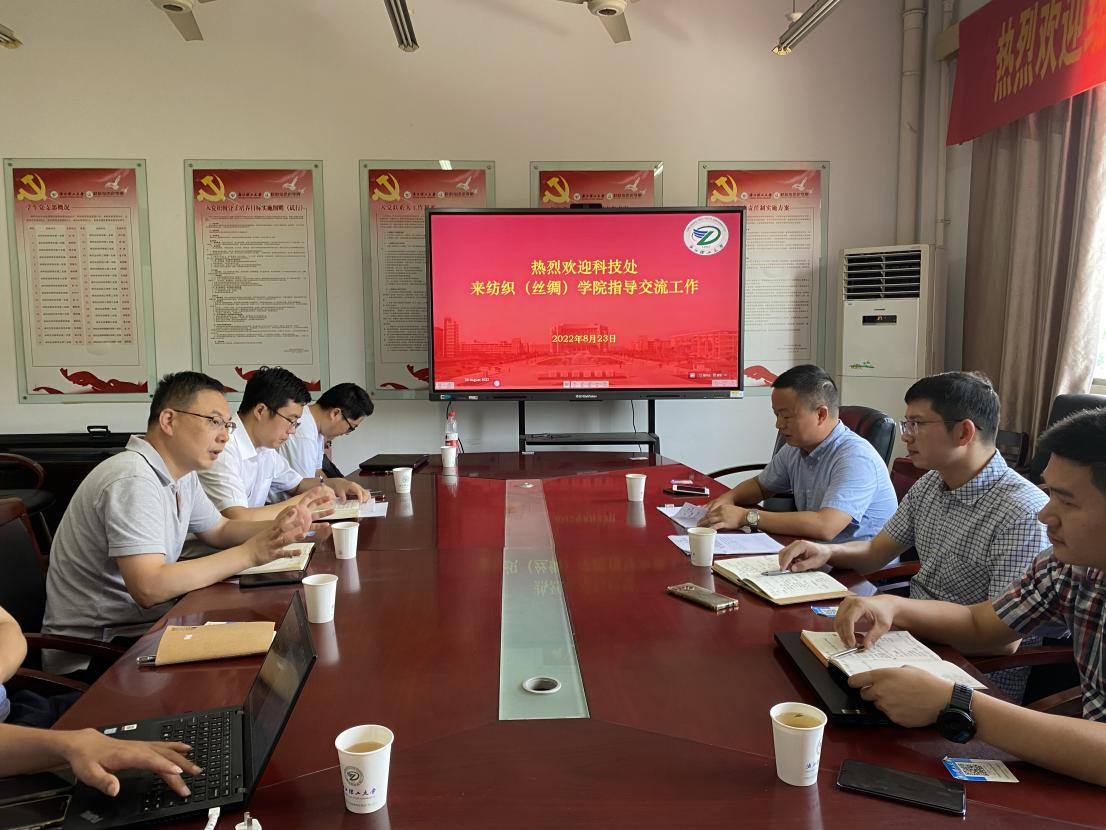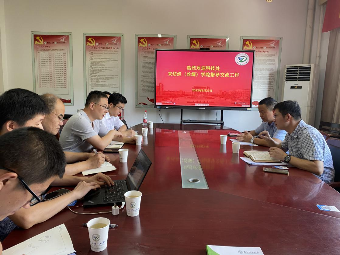 8月23日上午,MK体育科技处副处长朱恩泽,先进技术研究院经理凌晓冬、副经理陈荣来MK体育指导交流科研工作。MK体育经理于斌、副经理余厚咏、纺织材料系主任张华鹏、教学科研办公室主任顾越桦、非织造工程系副主任刘国金、纺织工程系竺铝涛和轻化工程系周青等教师代表参加了研讨交流。