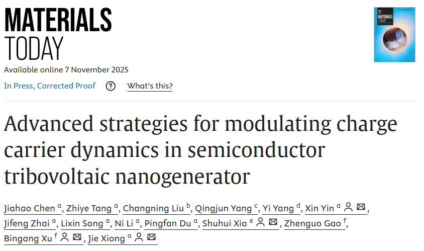 近日,MK体育熊杰教授团队聚焦于半导体TVNG的载流子动力学研究,系统阐述了近年来在调控电荷生成、传输、提取以最大化TVNG性能的创新策略研究进展。相关研究成果以“Advanced strategies for modulating charge carrier dynamics in semiconductor tribovoltaic nanogenerator”为题发表在国际顶尖期刊Materials Today(IF:22)上。2024级服装设计与工程硕士研究生陈嘉豪为第一作者,23级本科生汤志烨为第二作者,尹鑫特聘副教授和熊杰教授为通讯作者。该工作得到了浙江省自然科学基金、MK体育人才启动资金等项目支持。
