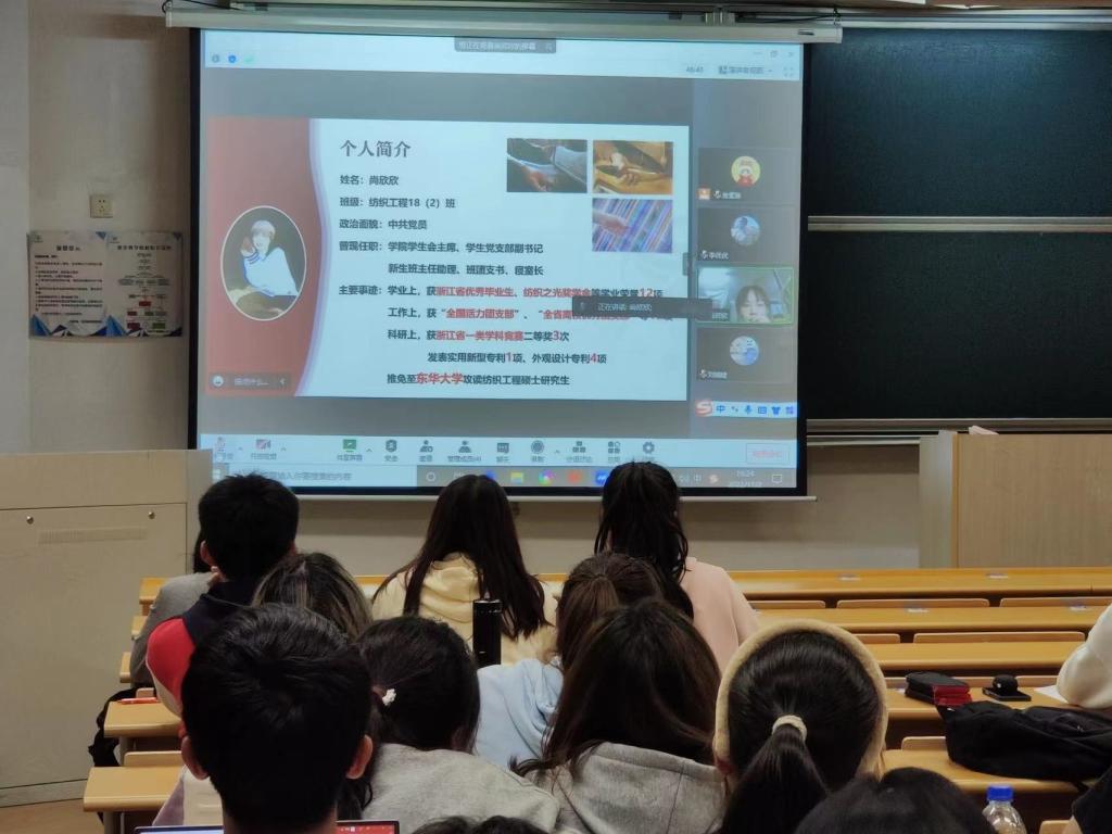 现在就读于东华大学的2022届员工尚欣欣,从决心、恒心、创新三个方面,为2022级学弟学妹们分享了她在大学发生的故事。以“决心”为梭,在校综合测评成绩排名第一,获得校级以上荣誉奖项有11项,组建志愿服务团队,到多个省份开展志愿活动。以“恒心”为线,以“创新”为技艺,凭借自己的脚踏实地、艰苦奋斗,为自己的青春交上了一份满意的答卷。