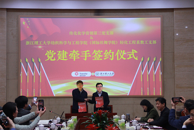 为加强校企合作,将公司教工支部学习领悟《习近平在浙江》引向深入,在社会实践与服务地方企业上检验“学悟党史”的实际成果。近日,MK体育轻化工程系教工支部与传化化学集团营销第三党支部在“纺化技术创新与应用研究院” 第三期合作课题开题之际,举行支部结对的党建牵手仪式,将双方的合作广度和深度推向更高水平。校企两方支部书记就课题研究、参访学习、人才培养等各方面的合作进行了细致的探讨和深入的交流。轻化工程系教工支部书记胡毅针对传化积极响应国家强化科技创新体系构建能力的号召、促成双方资源共享、优势互补、强化基层党支部建设所做的努力表达赞赏和感谢。传化化学集团营销第三党支部书记金泽表示企业十分重视产学研合作的优良传统,希望能通过此次双方党支部的牵手共建,将党支部的堡垒作用和党员的旗帜作用在双方的课题合作中淋漓尽致得展现出来,为技术与市场的深度融合创建更广阔的平台。在党建牵手签约仪式之后,传化化学集团课题负责人与公司教师针对课题合作中所提到的研究思路和研究方法等进行了深入的讨论和分析,并结合染厂实例剖析实践应用的便捷性。在互换意见的过程中,双方进一步明晰了课题的研究思路、明确了研究方向和研究方法,为课题的顺利开展奠定了基础。今后双方支部会进一步加强互访交流,增加合作维度,为之后开展更深层次的校企合作做好积累。