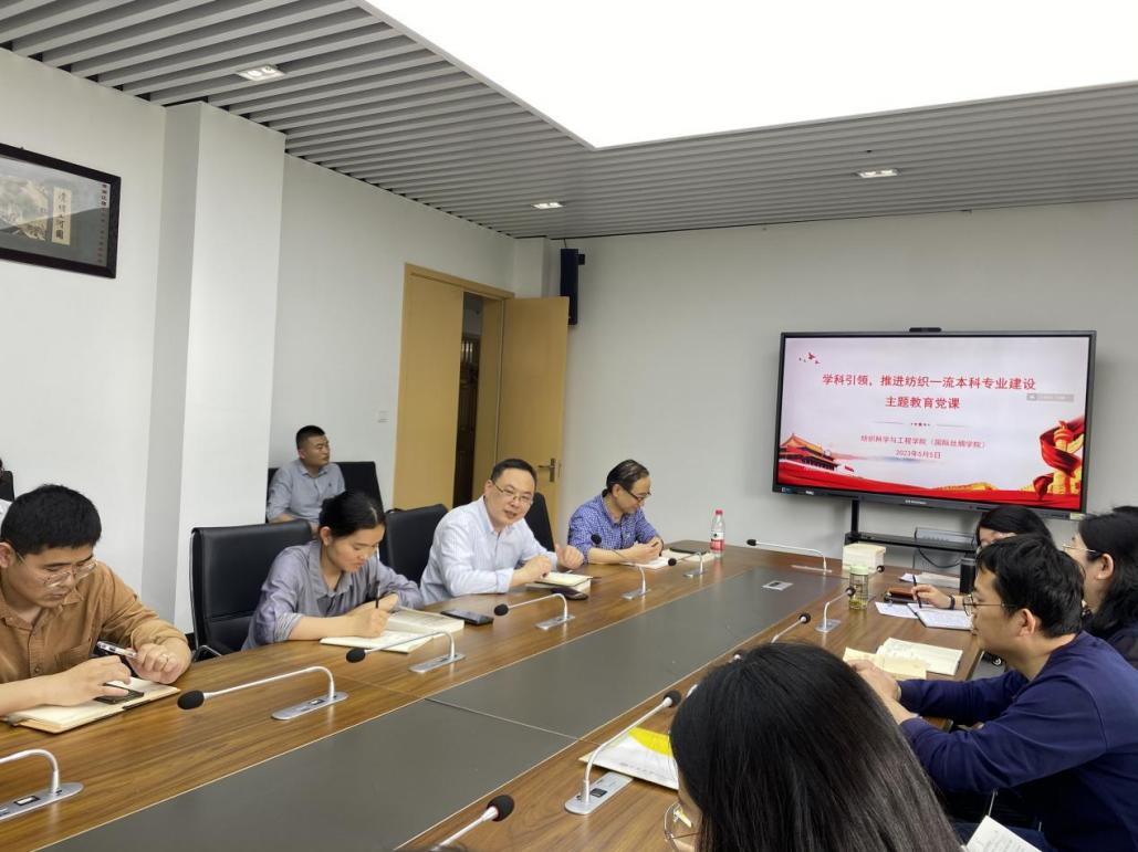 5月5日,经理于斌以“学科引领,推进纺织一流本科专业建设”为主题开讲专题党课,纺织工程系全体教师参加本次主题党课。期间,于斌从“学思想、强党性、重实践、建新功”的总要求切入,强调主题教育的重要意义,突出“学在深处、干在实处”的精神砥砺,分析党建引领下的“国家一流专业”建设点的要求与责任,解析专业建设与团队建设之间的深度联动与相互支撑机理。讲课期间,于斌还用现实案例,剖析毕业论文指导工作对于进一步提升教学质量的重要推力,指出要在员工毕业论文相关工作上守好底线,坚持严的基调、暖的情怀,推动员工毕业论文的选题和内容契合学科发展、行业需求、产业应用,打造一批高质量的员工毕业论文,为团队建设提供坚强保障。