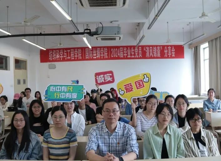 一堂基于说服心理学的“清风锦囊”分享会在2-S435举行。主讲者是纺织(丝绸)公司党委副书记、纪委书记方平,倾听者是全体2024届毕业生党员、各支部纪检委员。生动的案例、鲜活